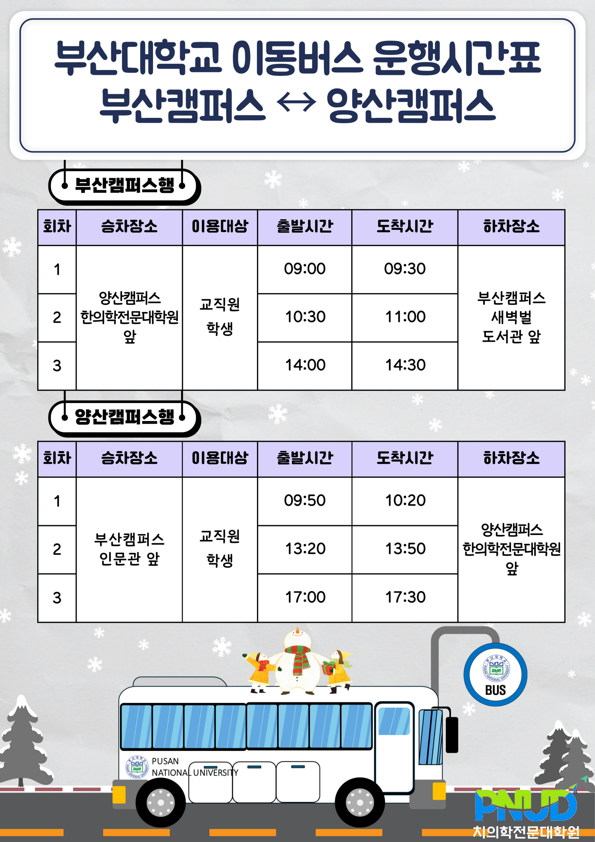 2025학년도 2학기 캠퍼스 간 셔틀버스 운행 재개 알림